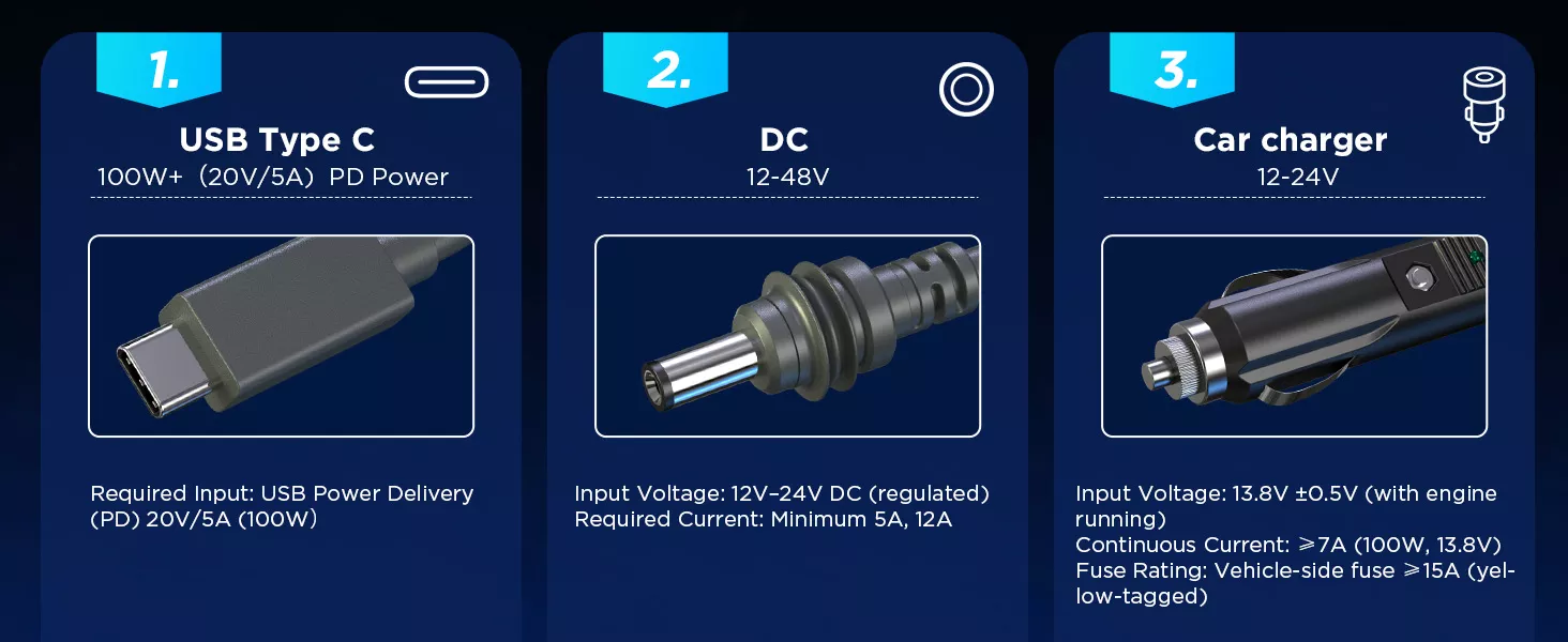A 3-in-1 power cable for Starlink Mini combining USB-C, car charger, and DC-to-DC power options for flexible use anywhere. Featuring plug-and-play installation, waterproof and weather-resistant construction, and stable high-speed performance, it ensures reliable connectivity indoors and outdoors. For best performance, a power bank with at least 100W (20V/5A) output is recommended.